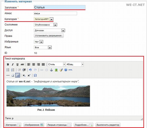Создание материала на движке Joomla (1.6-2.5)