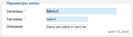В появившемся окне предаем меню Заголовок, Тип меню и Описание. Нажимаем кнопку Сохранить и закрыть.