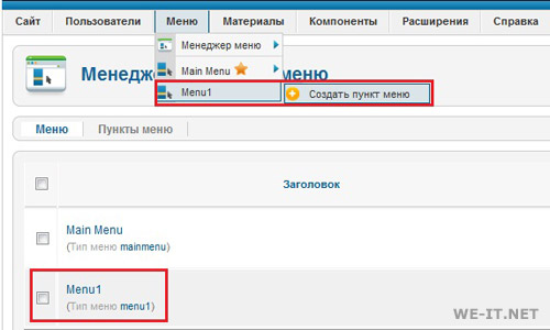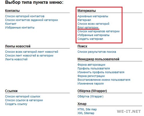 Создание меню для вывода материалов в Joomla (1.6-2.5)